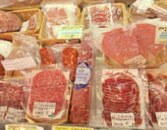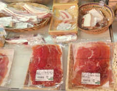 生ハム・サラミ等肉類のコーナー。