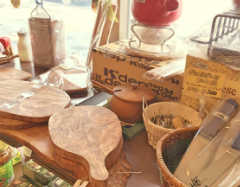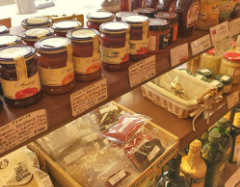 入り口から左手に広がるSHOPコーナー。お買い物のみのお客様だけでなくRESTAURANTご利用のお客様も店内をご覧いただきながらお料理が出てくるまでお待ちいただけます。
