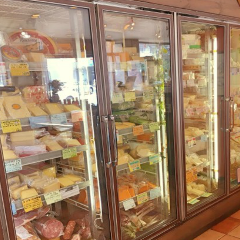 おすすめラインナップコーナー。旬のチーズ、お買い得品、プレゼント用に当店がセレクトした食べ比べセットなど盛り沢山